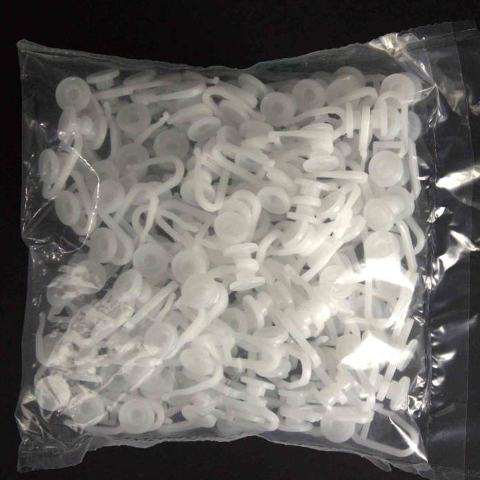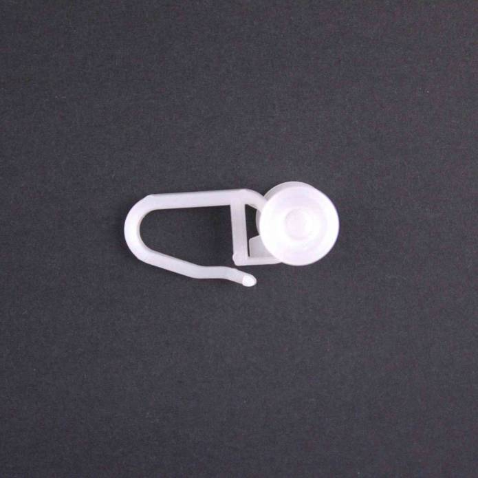 Cârlige cu rotițe mari, din plastic, pentru șină de PVC.